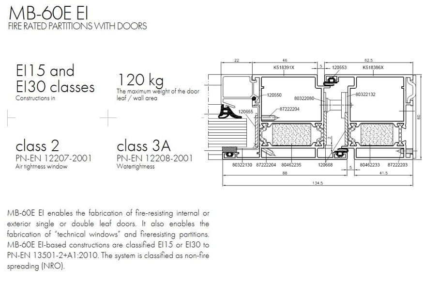 MB-60 E EI profiili lengi sügavus ja ukselehe paksus on 60 mm ning kasutatakse EI-30 tuletõkke siseustel.