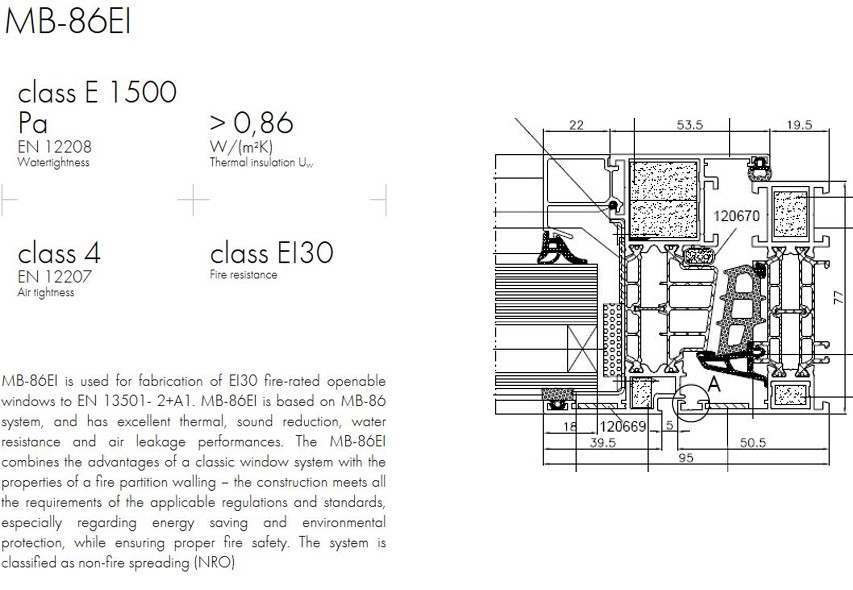 MB-86 EI profiil on külmakatkestusega – sisemine ja välimine terasosa on teineteisest termiliselt eraldatud, lengi sügavus ja ukselehe paksus on 77 mm ning kasutatakse EI-30 tuletõkke välisustel.